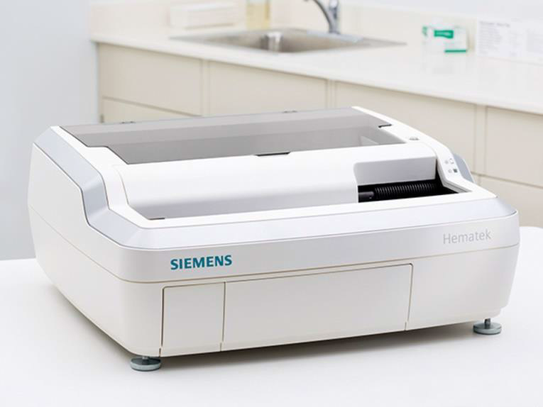 Complementing the Siemens family of hematology analyzers, the Hematek provides semiautomated slide staining for laboratories that need a robust system capable of staining up to 60 slides per hour. Built on a heritage of slide staining spanning more than half a century, the system helps maximize productivity and deliver quality results through user-defined features and precision controls.
